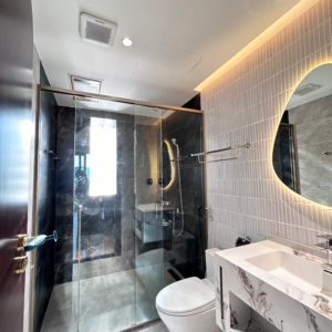 - Phòng tắm lớn (10m² trở lên): Cabin có kích thước từ 1200x900mm trở lên, thường đi kèm bồn tắm hoặc các tiện ích cao cấp như hệ thống massage.