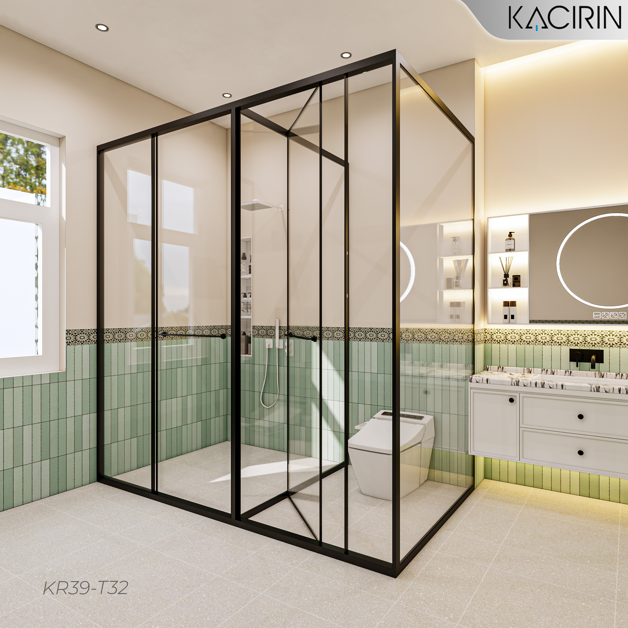 Tên sản phẩm: Cabin Tắm Kacirin Master mở lùa 2 cánh + 3 vách cố định KR39-T32