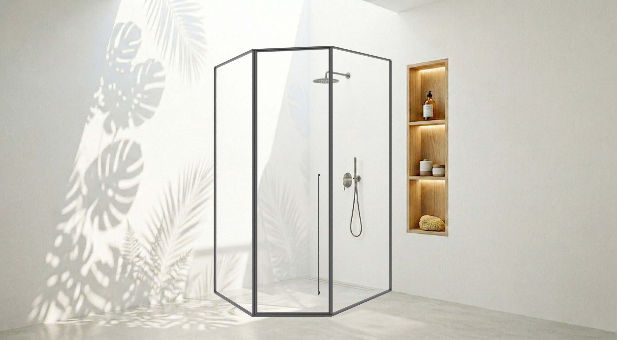 - CABIN MỞ QUAY GÓC 135 1 CÁNH + 2 VÁCH CỐ ĐỊNH ẨN BẢN LỀ
