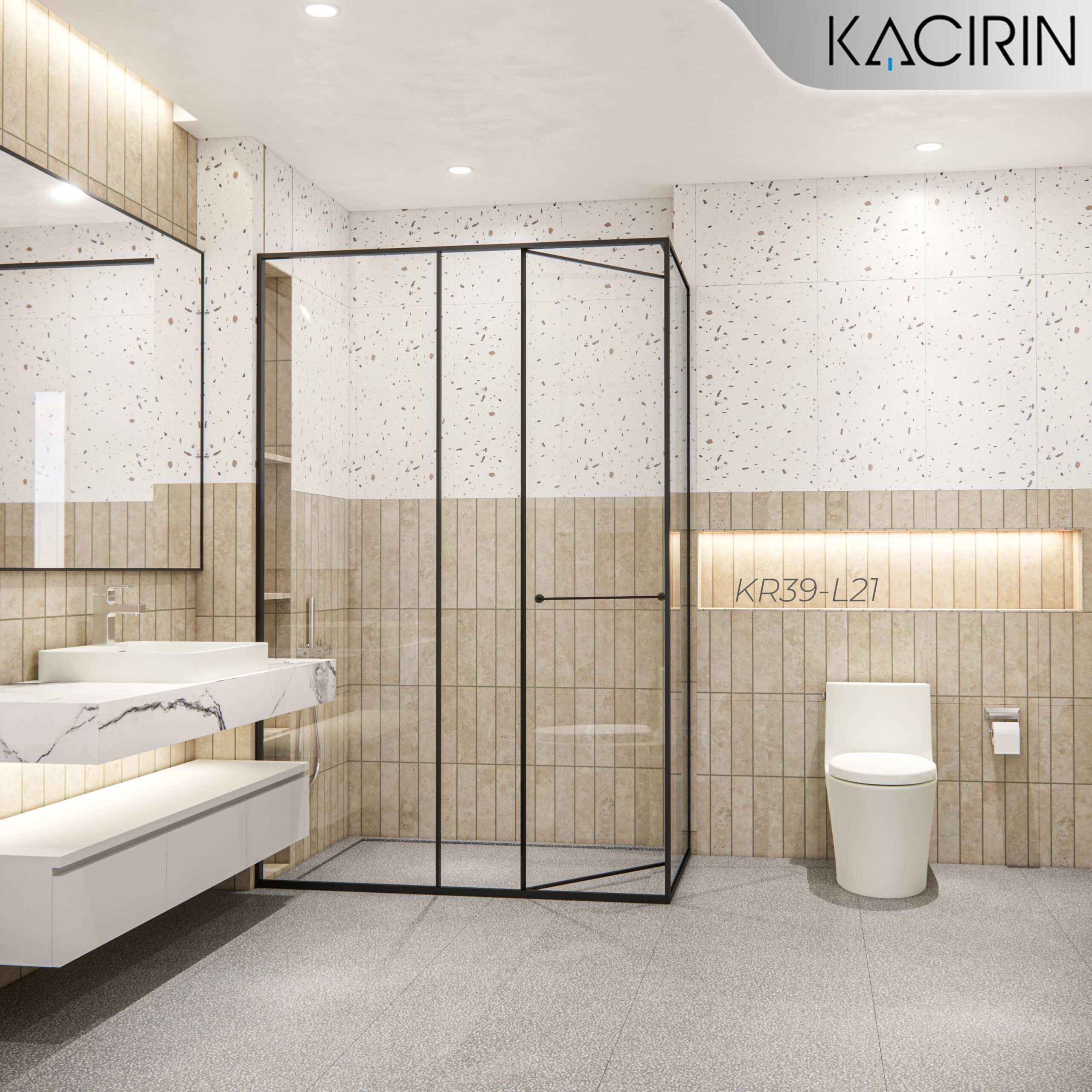 Tên sản phẩm: Cabin Tắm Kacirin mở lùa góc 90 1 cánh + 2 vách cố định KR39-L21